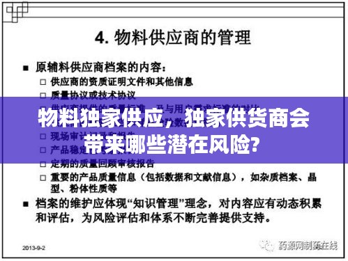 转载请注明来自金坛区指前镇锦文建材厂,本文标题:《物料独家供应,独家供货商会带来哪些潜在风险? 》