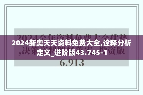 随着2024年的脚步日益临近,新奥作为一个充满活力和创新的城市,已经变得更加引人瞩目。在这个大数据的时代,对资料的需求量也随之大增。本文旨在提供一个名为“新奥天天资料免费大全,诠释分析定义_进阶版43.745-1”的资源宝库,为那些热衷于研究和探索新奥文化的人士提供一个集学、分析于一体的平台。我们将从多个维度对资料进行诠释和分析,帮助用户深入了解新奥的方方面面。